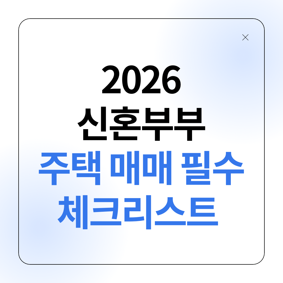 2026 신혼부부 ‘이것’ 모르면 1억 손해? 주택 매매 필수 체크리스트 TOP 5